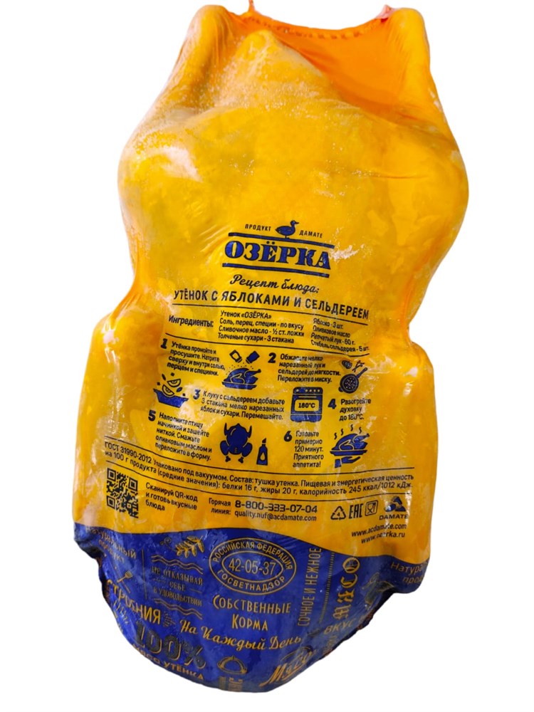 Описание : часть тушки: целая тушка, птица: утка. Целая тушка утенка потрошеная.
